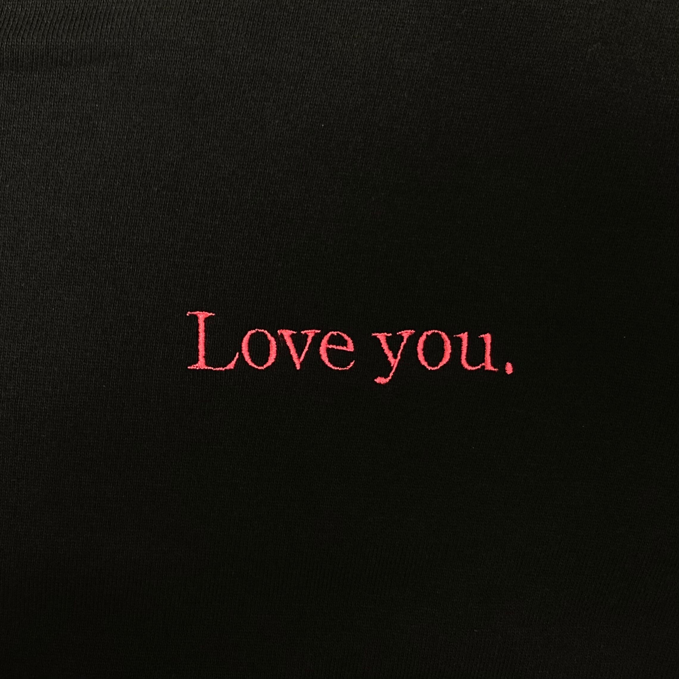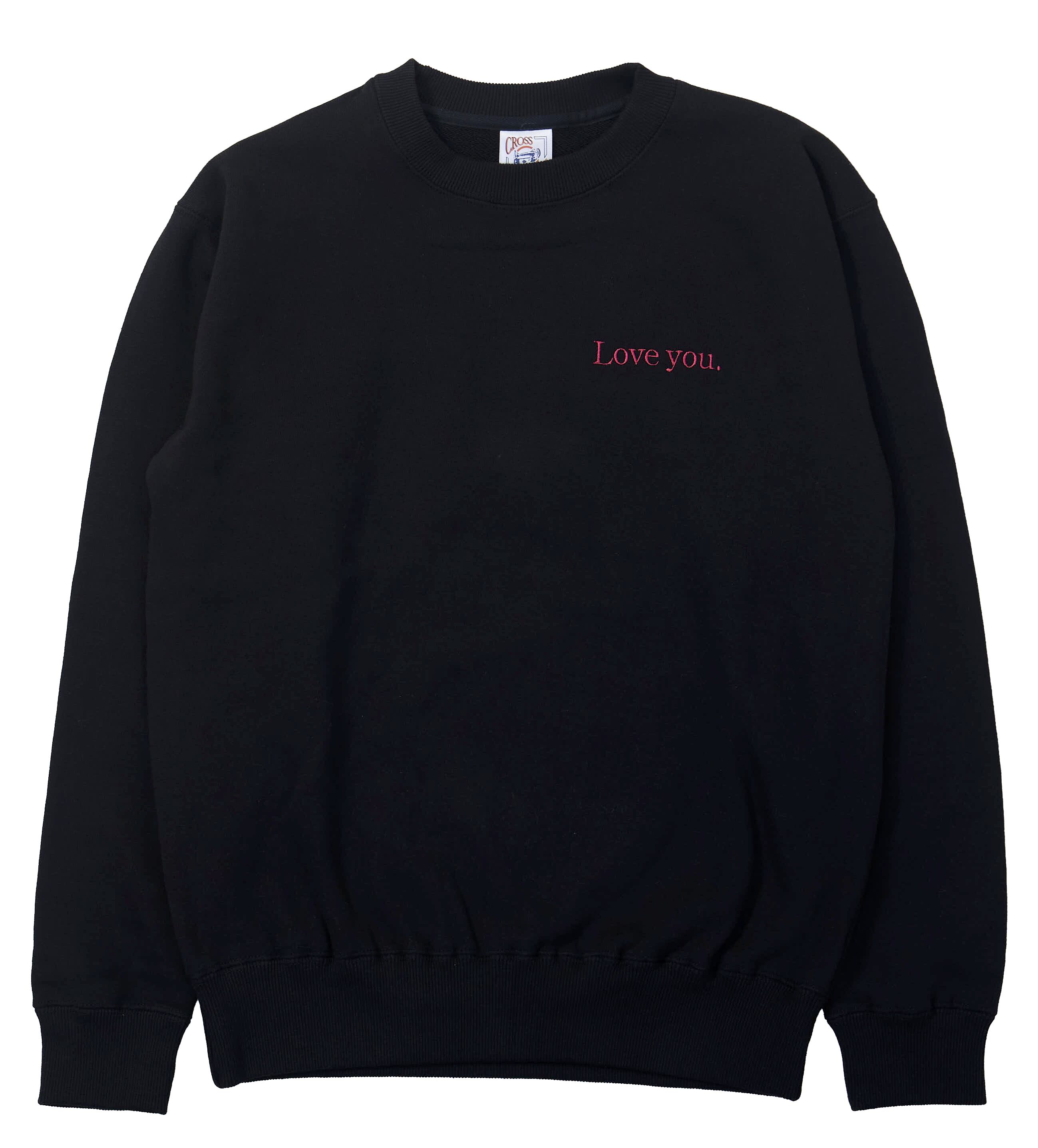 BLACKのスウェットに「Love you.」の赤い刺繍がデザインされた服です。